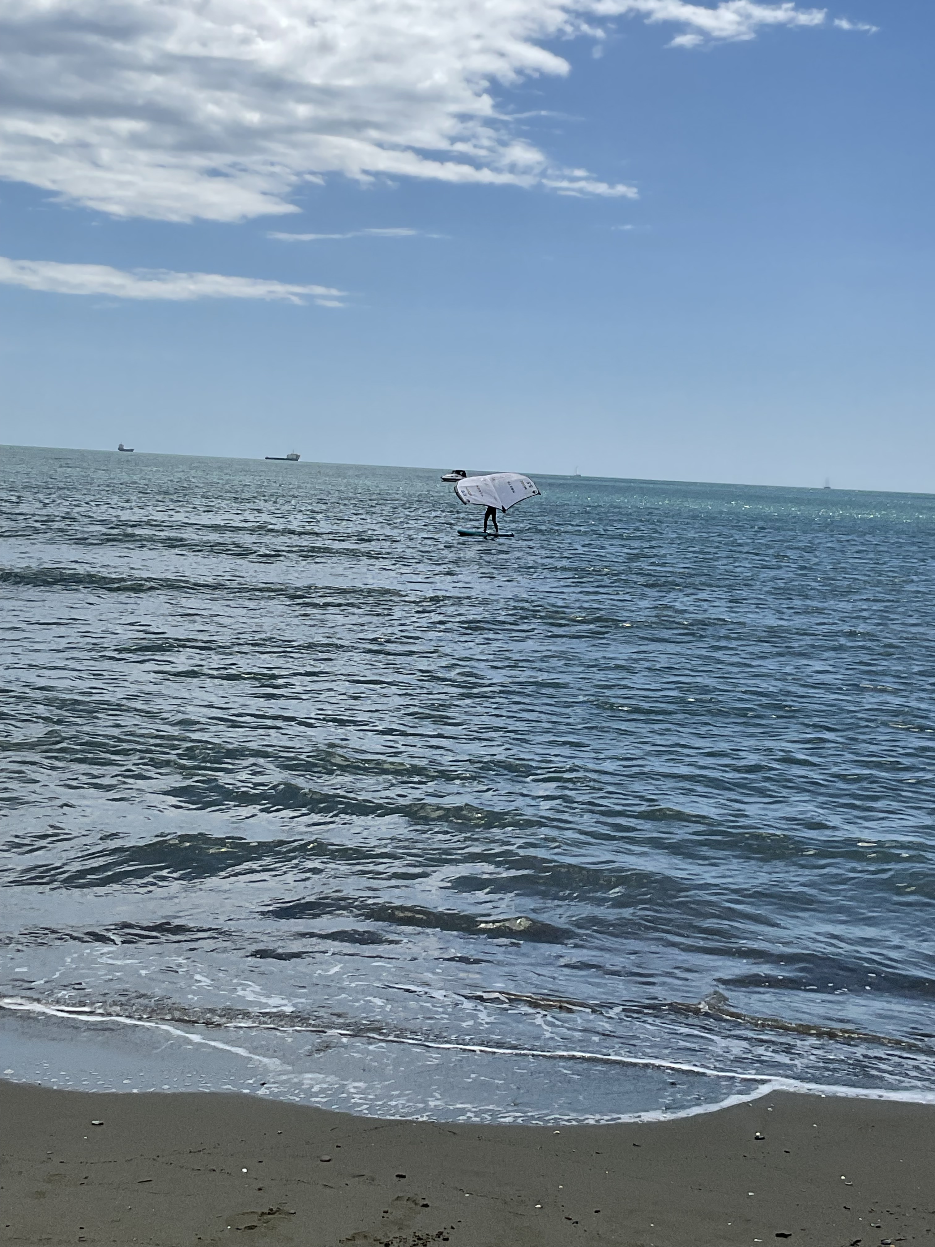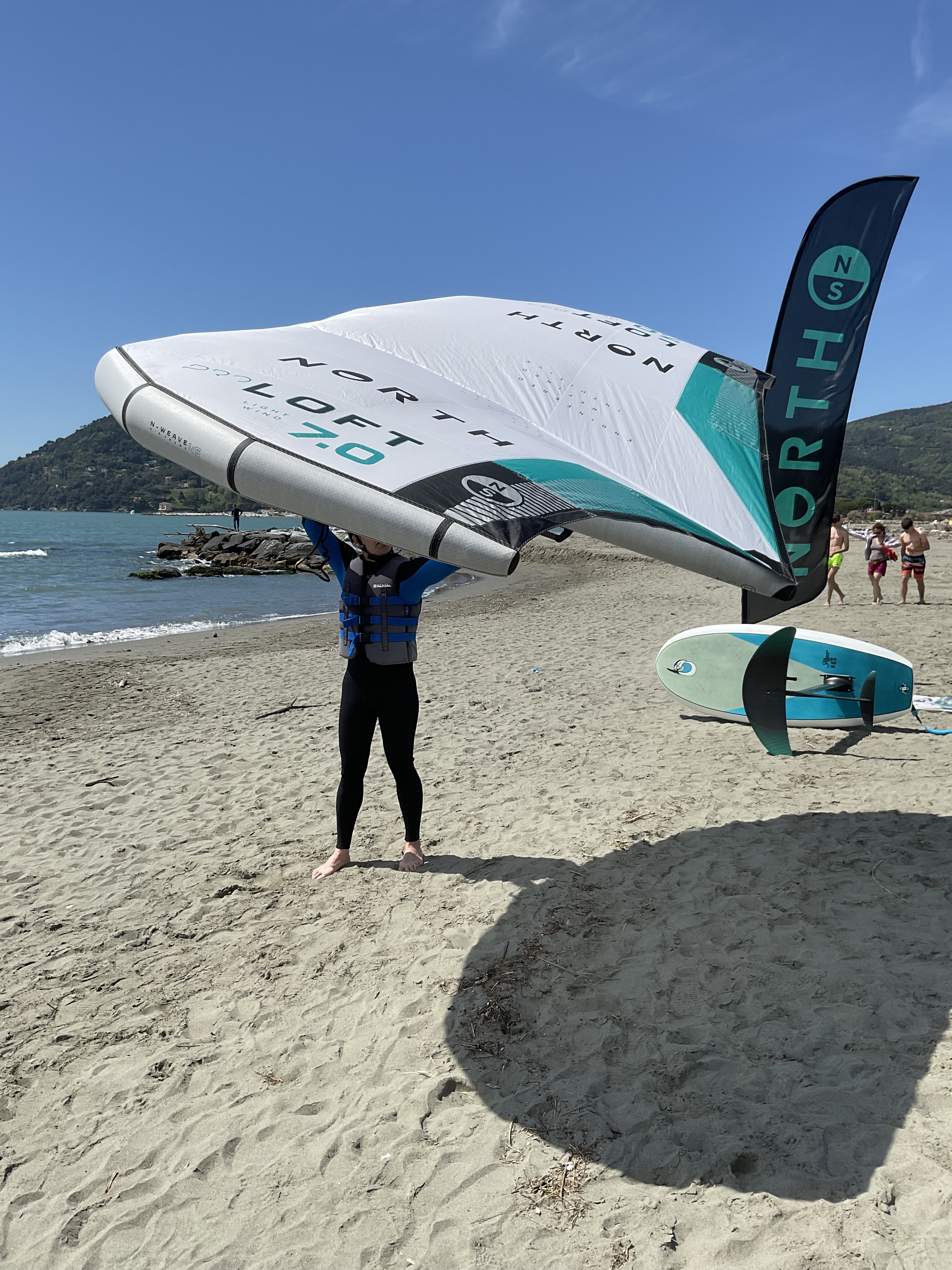 la nostra didattica wing foil sulla spiaggia di Marinella di sarzana