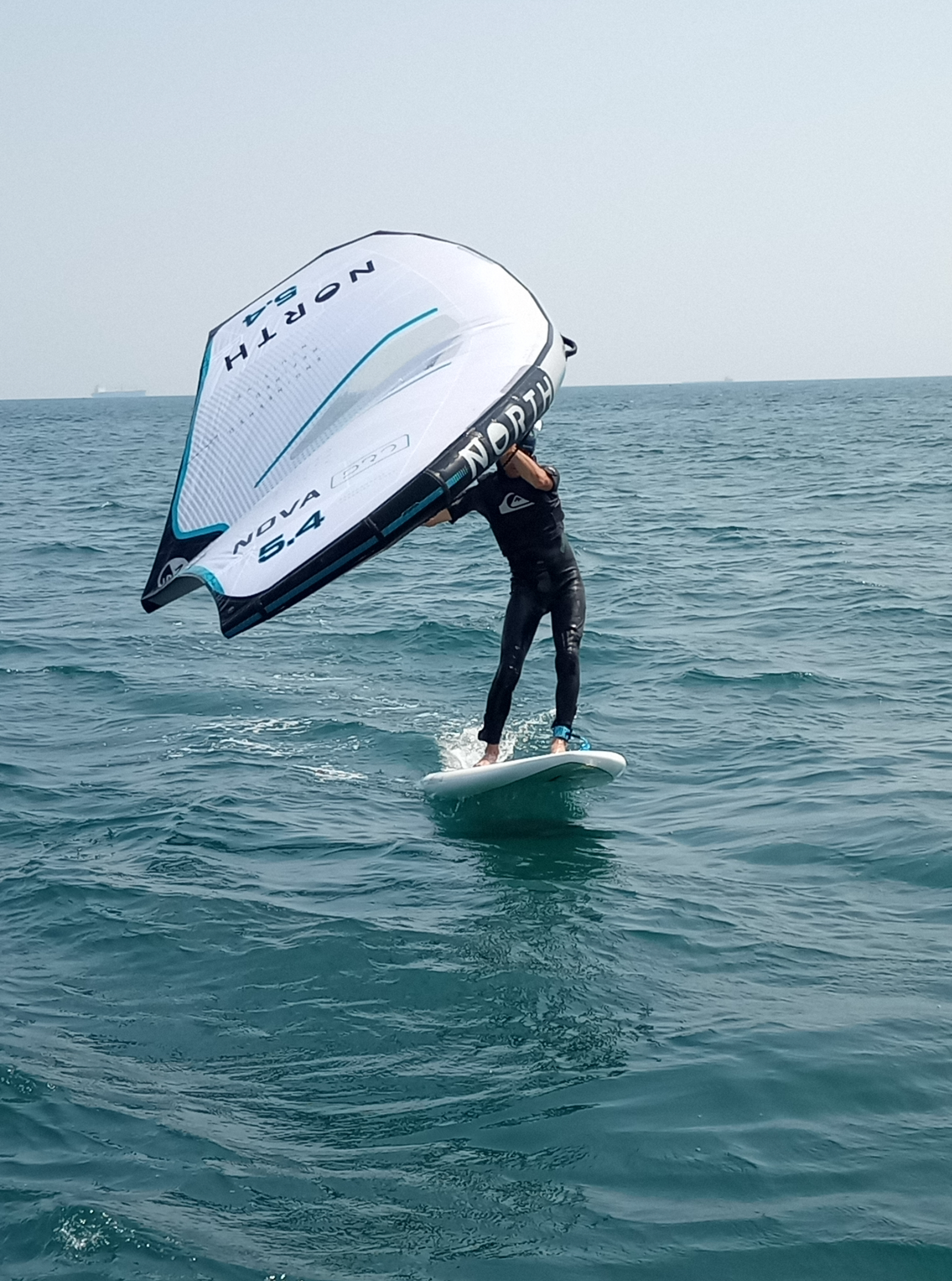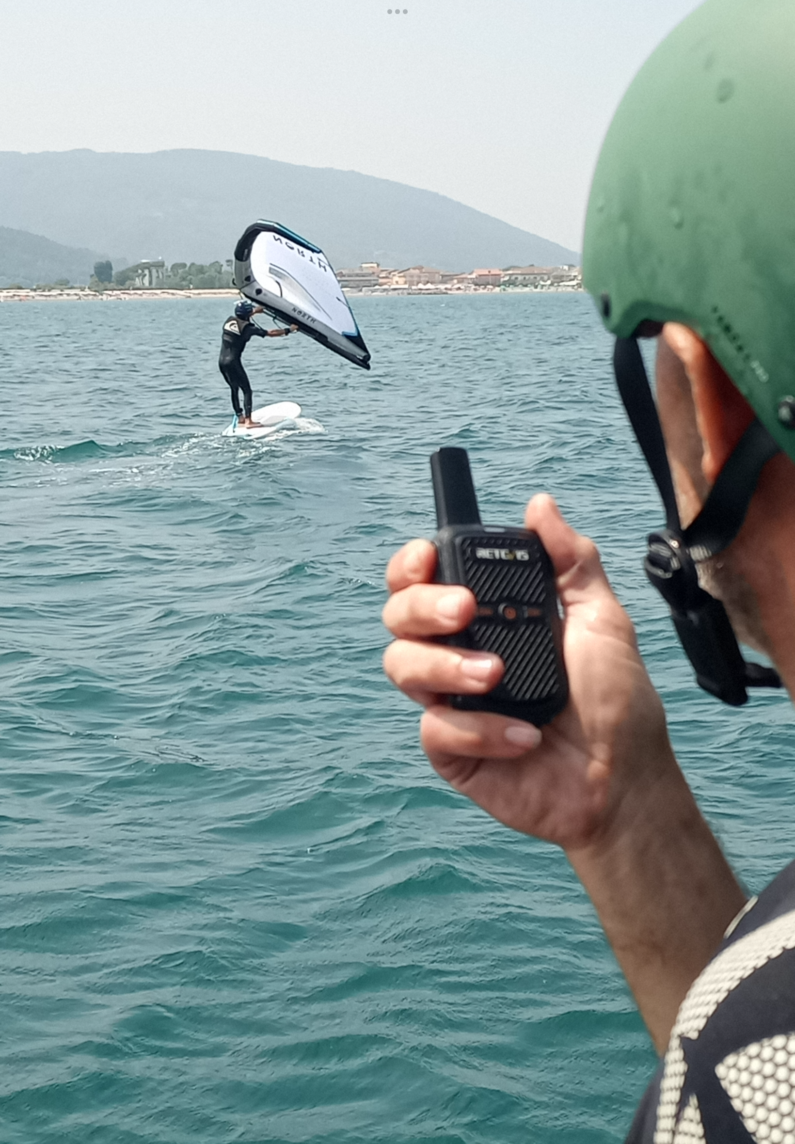didattica wing foil con assistenza dalla nostra imbarcazione.
